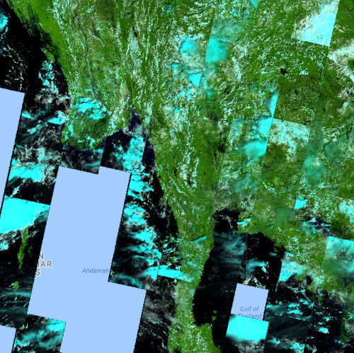 i. Bạn thấy gì trên cửa sổ bản đồ? Tập ảnh gồm nhiều ảnh, nhưng không phải tất cả đều được hiện lên. Khi chúng ta sử dụng hàm Map.addLayer để đưa một tập ảnh vào cửa sổ bản đồ, theo mặc định/default chỉ các pixel mới nhất sẽ được hiển thị