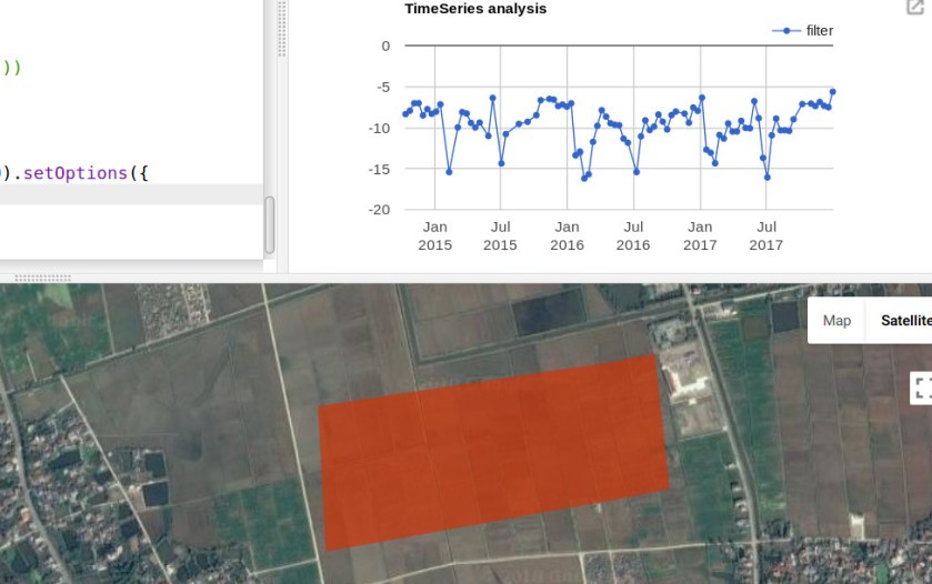 With sentinel 1 we can measure the earth where it’s cloudy or dark. Sentinel 1 uses synthetic aperture radar (SAR), a technology that can capture images in any light or weather condition. below an example to create timeseries with SAR using a speckle filter. See the example here.