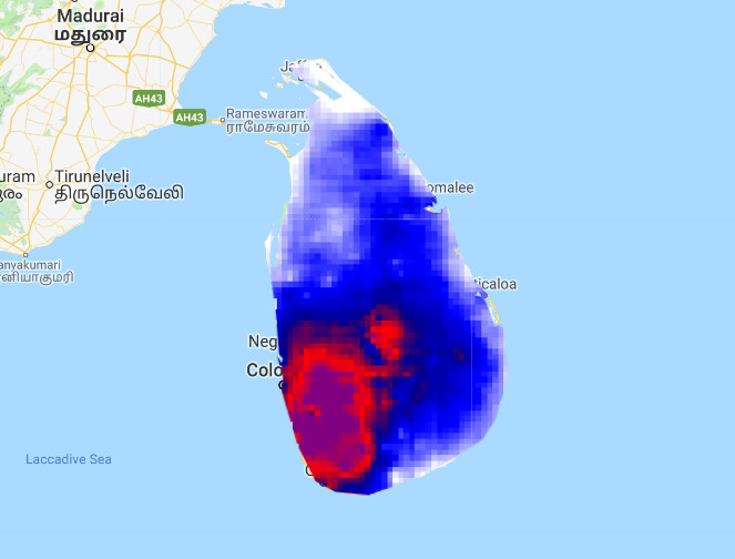 Map.addLayer(chirps.clip(aoi),{min:??,max:??,palette:"??,??,??"},"??");