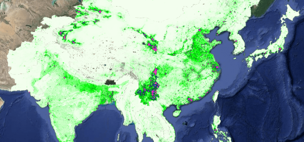 WorldPop provides estimates of numbers of people residing in each 100x100m grid cell for every low and middle income country.